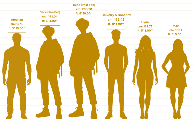 | PHYSIQUE: | Height varies (see image) | Toned | Left-handed |