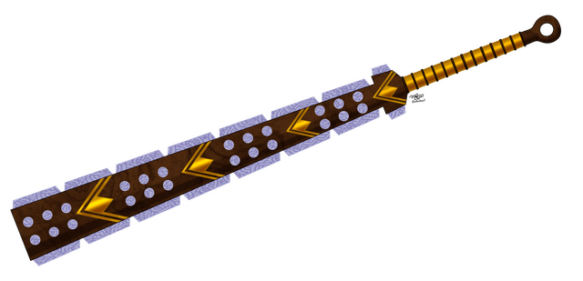 Honmoon Macuahuitl (maw-KWA-hee-tul): Two-handed club-sword made from wood, crystal, and gold. While most macuahuitls measure between 1.6 and 4 feet (0.5–1.2 m), Cecilio’s is as tall as he is, shaped with the proportions of a greatsword. Despite its massive size, he wields it effortlessly & can summon or dismiss it at will.